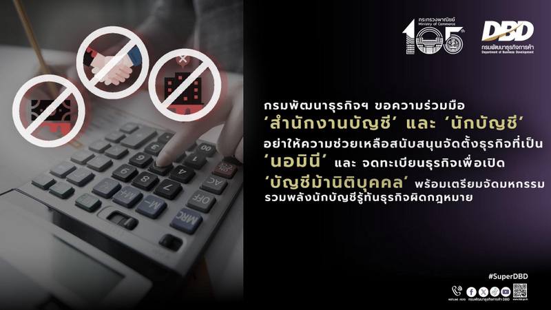 The department urged all registered representatives and certifiers — particularly lawyers, accountants, and auditors — to safeguard their login details and remain alert to potential misuse. Any suspicious activity should be reported to the DBD Call Center at 1570 or via Line Official @DBD1570.
