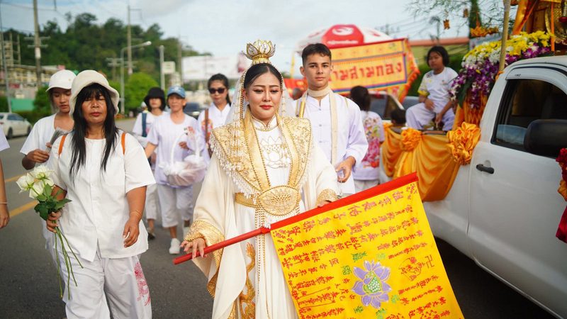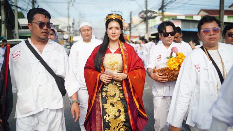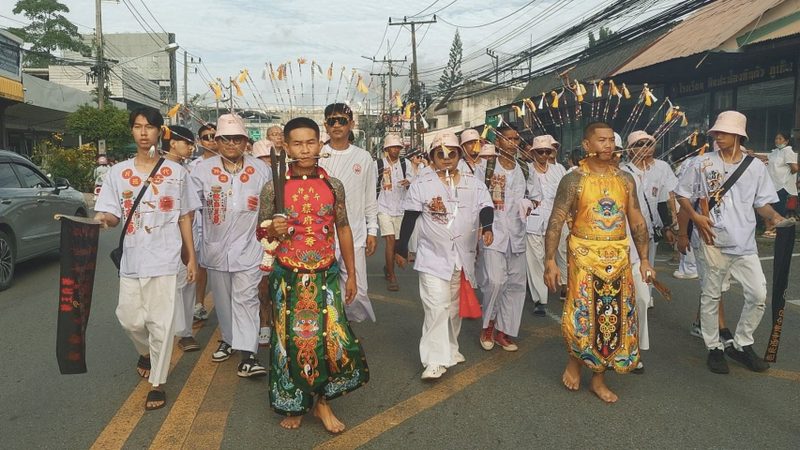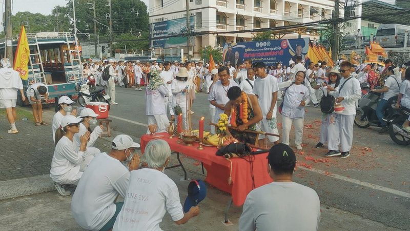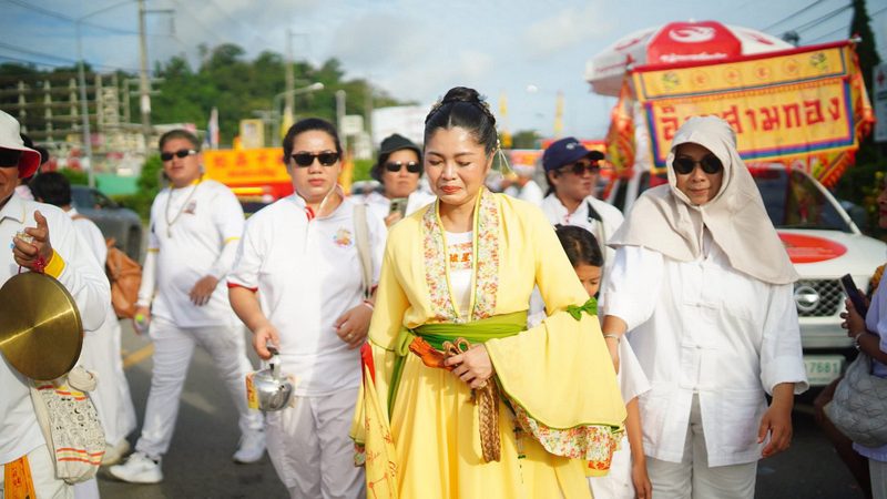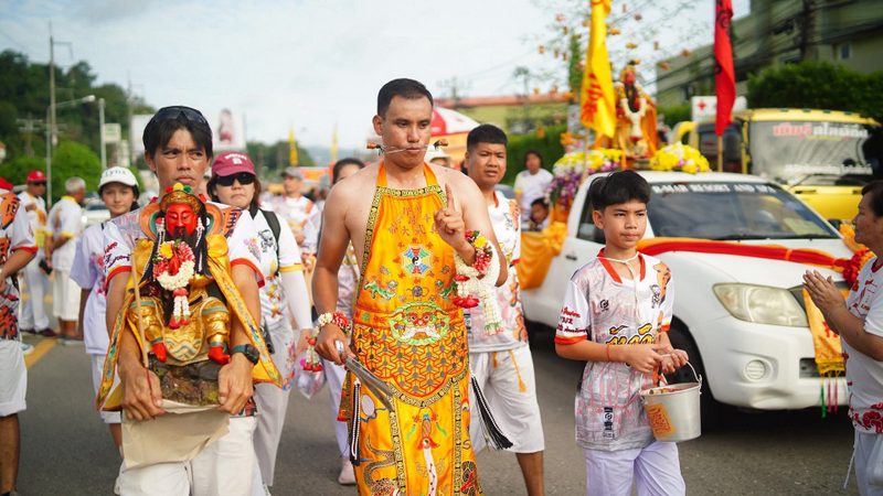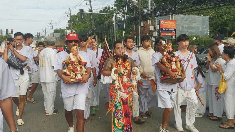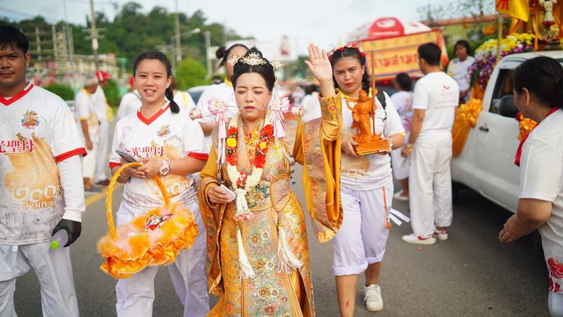 This year’s procession began early in the morning from Kathu Shrine and made its way through Kathu Town and along the main roads of Phuket Town before reaching Saphan Hin.