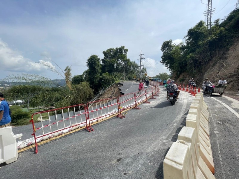The road past the landslide site remains open to motorbikes and pedestrians only. Cars and larger vehicles are still banned from crossing the hill.