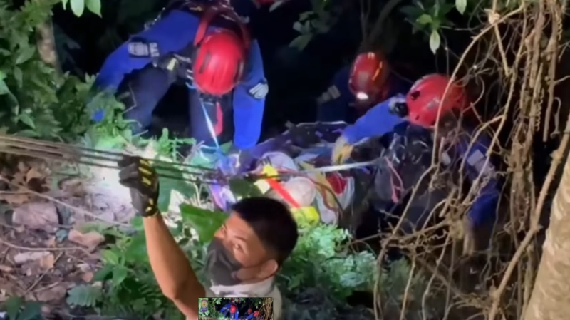 Rescue teams secured the area before lowering ropes and a stretcher down the ravine. Working against the steep terrain, rescuers managed to lift Mr Vasiliy safely back to the roadside before rushing him to Patong Hospital for urgent treatment.