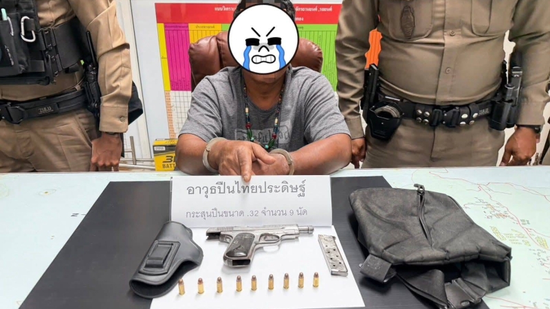 The suspect, not named in the report, was allegedly charged with possession of a firearm without a permit and illegal use of a Category 1 narcotic. Apparently he was taken to Phuket City Police Station at about 3:30am together with the seized evidence.