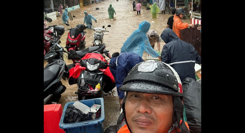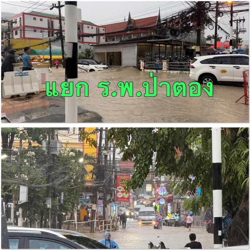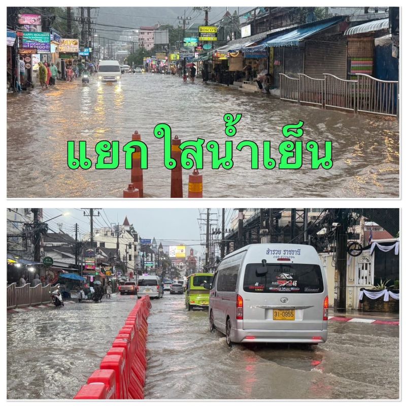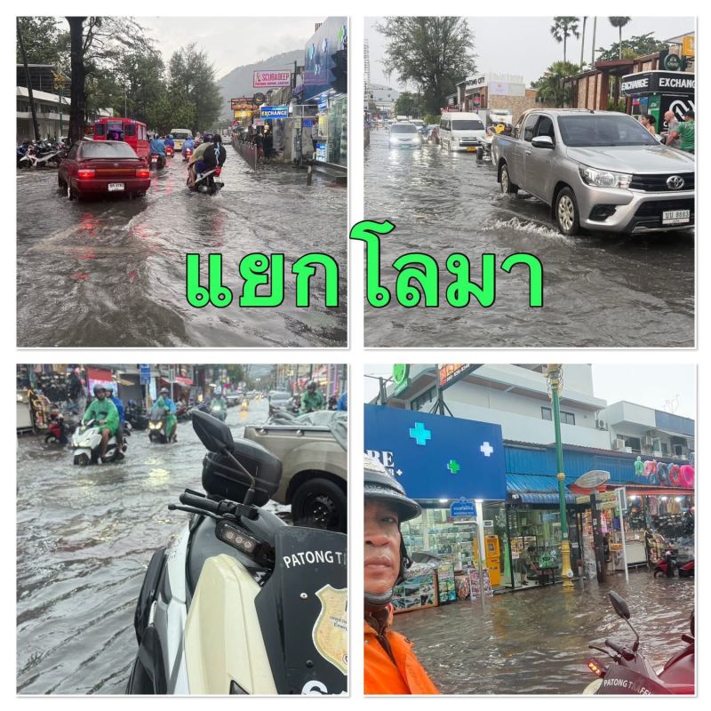 Patong Police issued an urgent advisory at 4:30pm warning motorists to avoid several inundated areas as officers were deployed to manage traffic and assess flood levels.