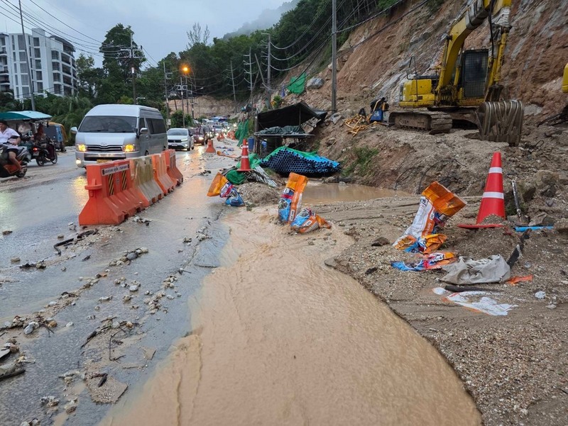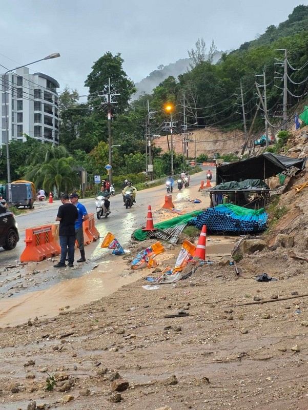 Despite the ongoing rain, there was some relief for motorists as traffic resumed along 50 Pi Rd after Patong Municipality cleared a landslide that had blocked the route between the Petchkud and Khaluang intersections.