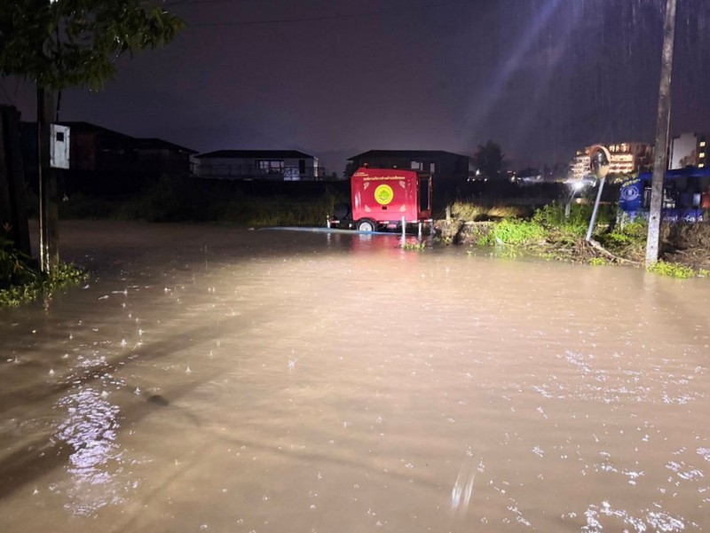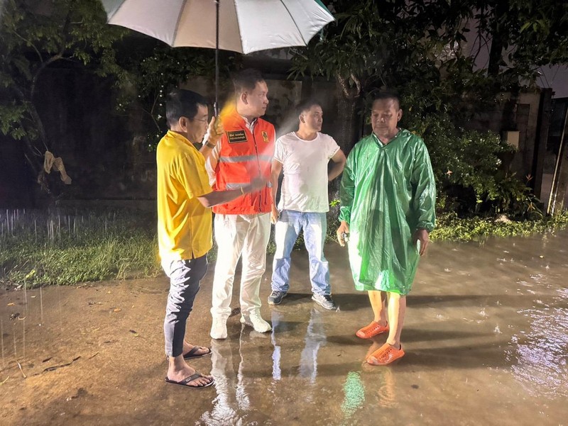 Accompanied by the Cherng Talay Mayor and disaster prevention officials, Mr Suwit ordered that all relevant agencies maintain 24-hour readiness with water pumps and emergency equipment to prevent flooding from worsening.