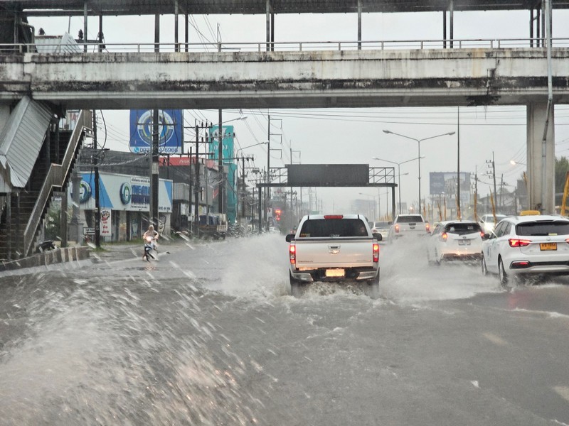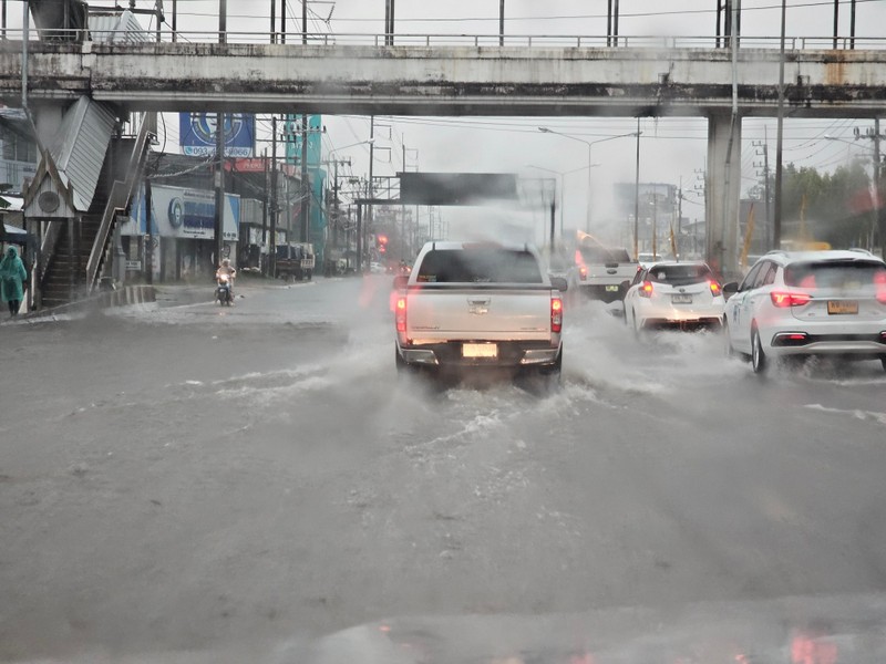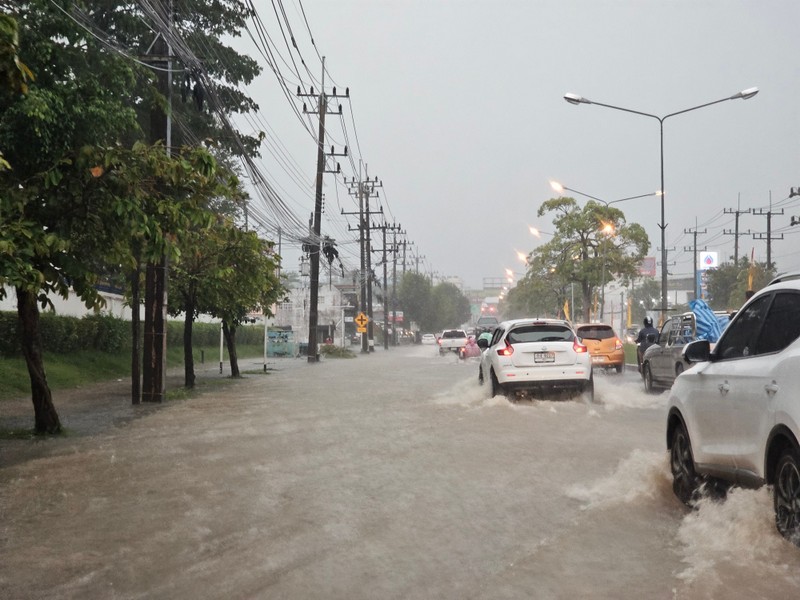 In Chalong, however, flooding across Chao Fa East Rd and Chao Fa West Rd at multiple locations caused huge traffic tailbacks.