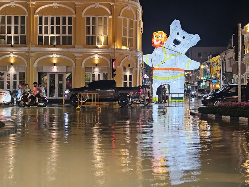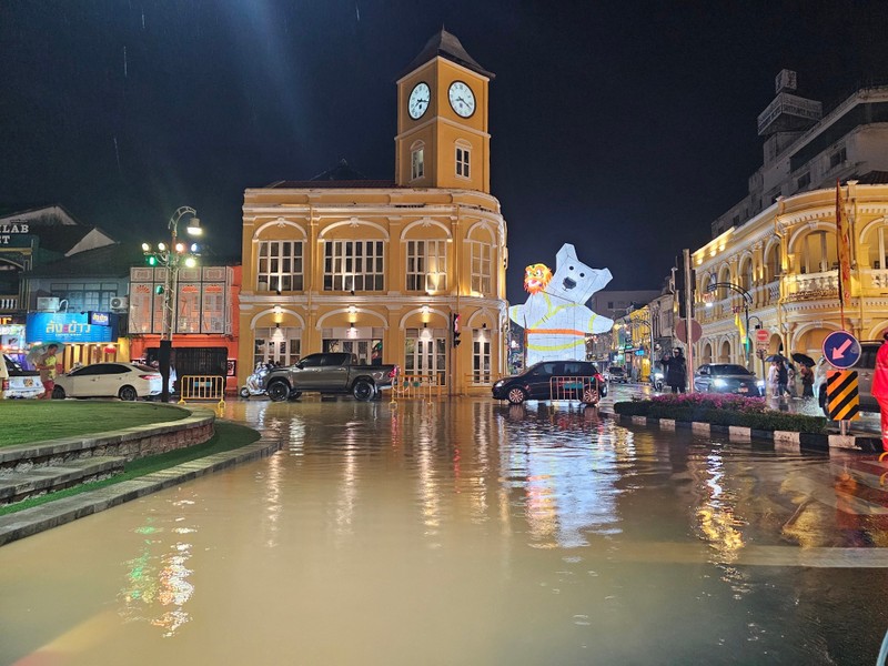 He added that the flooding was due to rainwater rather than seawater, and that Phuket Town’s drainage system was functioning as designed. The Governor ordered Defense Volunteers and Phuket City Municipality officials to monitor the water levels through the night and to prepare to alert residents if the situation worsens.