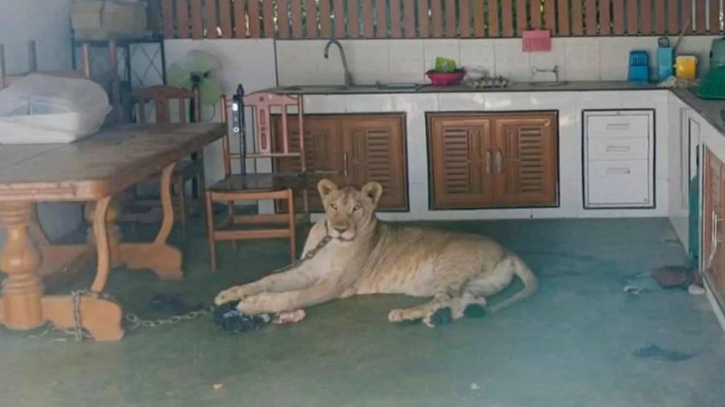 The man bought the lion from its previous owner in Chachoengsao, and the animal was registered and had a microchip. The attack happened on a public road.