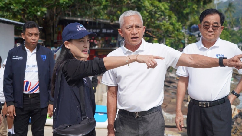 Following the ceremony, Ms Sasithorn, accompanied by Governor Angkoon, MP Kitti and Mayor Pankam, inspected damage to a 400-metre stretch of the island’s seawall, which has been repeatedly struck by monsoon-driven waves.