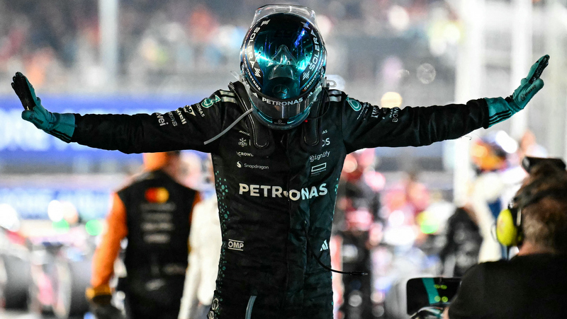 Kimi Antonelli crossed the line fifth in a Mercedes, followed by the Ferraris of Charles Leclerc and Lewis Hamilton.