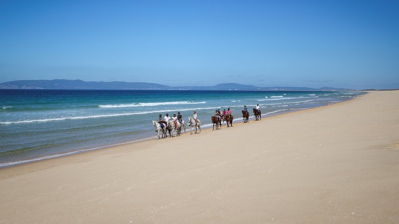 Tourists ride horse along Comporta beach on Sept 11, 2025. Photo: AFP