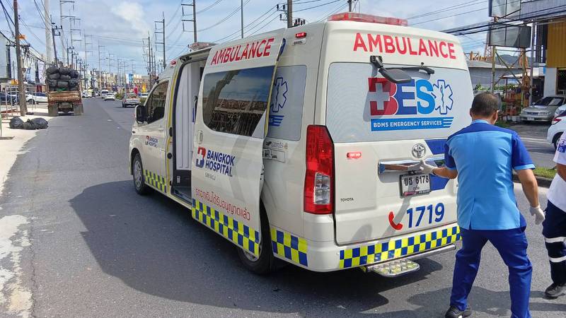 Rescue workers from Kathu Municipality and volunteers from the Kusoldharm Phuket Foundation performed CPR at the scene before an ambulance from Bangkok Siriroj Hospital transported Mr Wai Lin to hospital, where he was later pronounced dead.